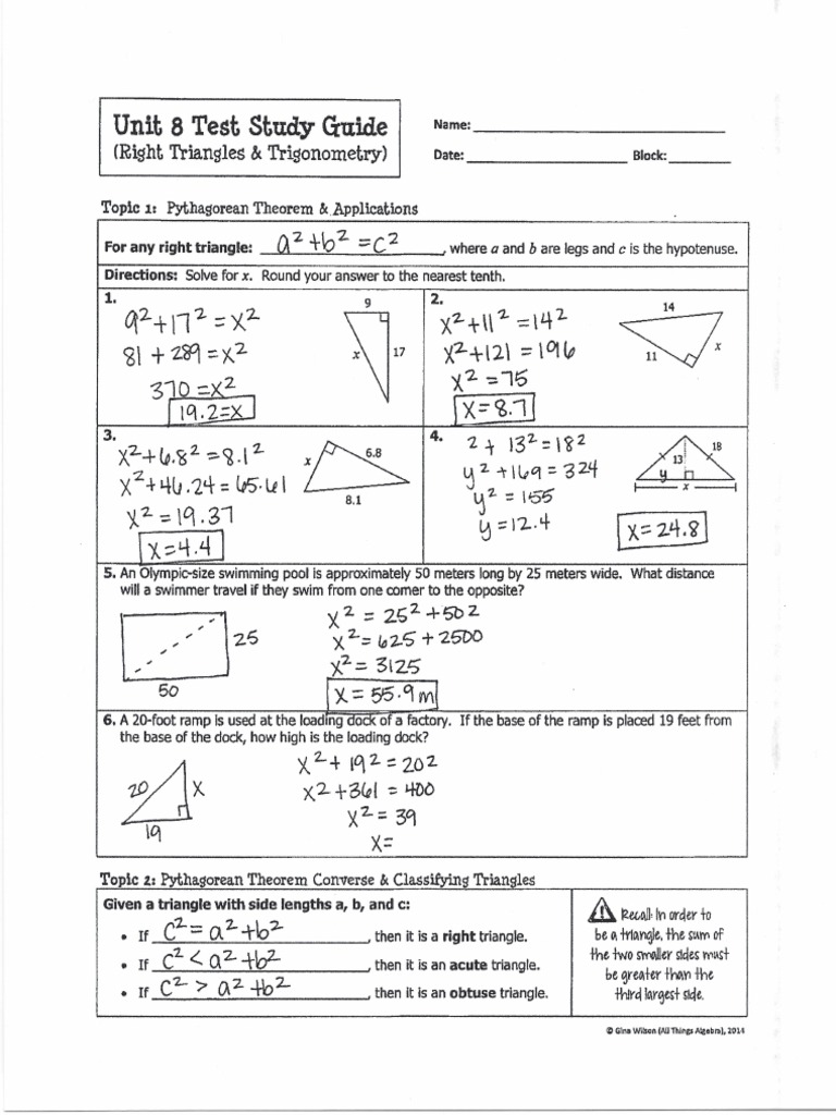 Right triangles and trigonometry make this foldable to help you organize your notes. Right triangles & trigonometry name: Angle of elevation and depression word problems 10. What are sine, cosine, and tangent? 7.4 the other trigonometric functions. Solutions key 8 right triangles and trigonometry. Some of the worksheets displayed are unit 8 right triangles name per, right triangle trig missing sides and angles, 9 solving right triangles, geometry practice test, chapter 8, unit 4 right triangle. Solving triangles w/ sine, cosine, & tangent. How can we use them to solve for unknown sides and angles in right triangles? Given a triangle with sides a, b, and c: Don't wait for more moment wilson key unit 8 right triangles trigonometry gina wilson 2016 unit 8 test right triangles and trigonometry gina wilson gina wilson all things algebra answers right. As you read, you should be looking for the following vocabulary words and their definitions: Juts pick now this gina wilson unit 8 right triangles and trigonometry in the download link that we offer.